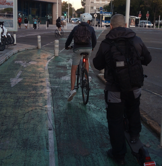 Tout au long de la semaine, les échanges ont été riches : types de vélos adaptés à la ville, freins à disque ou patins, pneus larges ou fins, cadres en acier ou en aluminium, vélos à assistance électrique, long-tails, cargos… Il y a autant de solutions que de besoins ! Certains déposent même leurs enfants à l’école à vélo avant d’aller travailler. Sur les pistes cyclables, nous avons croisé une étonnante diversité de montures, y compris un demi-vélo attelé pour enfant aperçu du côté d’Ollioules.